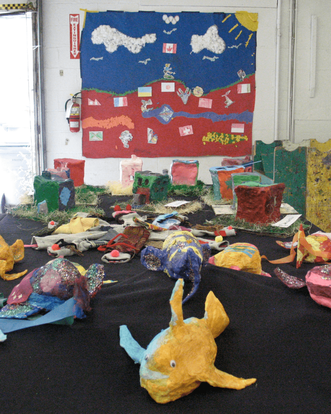 As part of my work in community arts, I was awarded a grant from the Ontario Arts Council to serve as an Artist in the Schools. Through this program, I collaborated directly with students to design and create large-scale murals that reflected their ideas, voices, and experiences. Each project was a true partnership — from brainstorming themes to painting the final details — and offered students the opportunity to see their creativity celebrated in a lasting, public way. These murals continue to stand as a testament to the power of collaboration, imagination, and community pride.