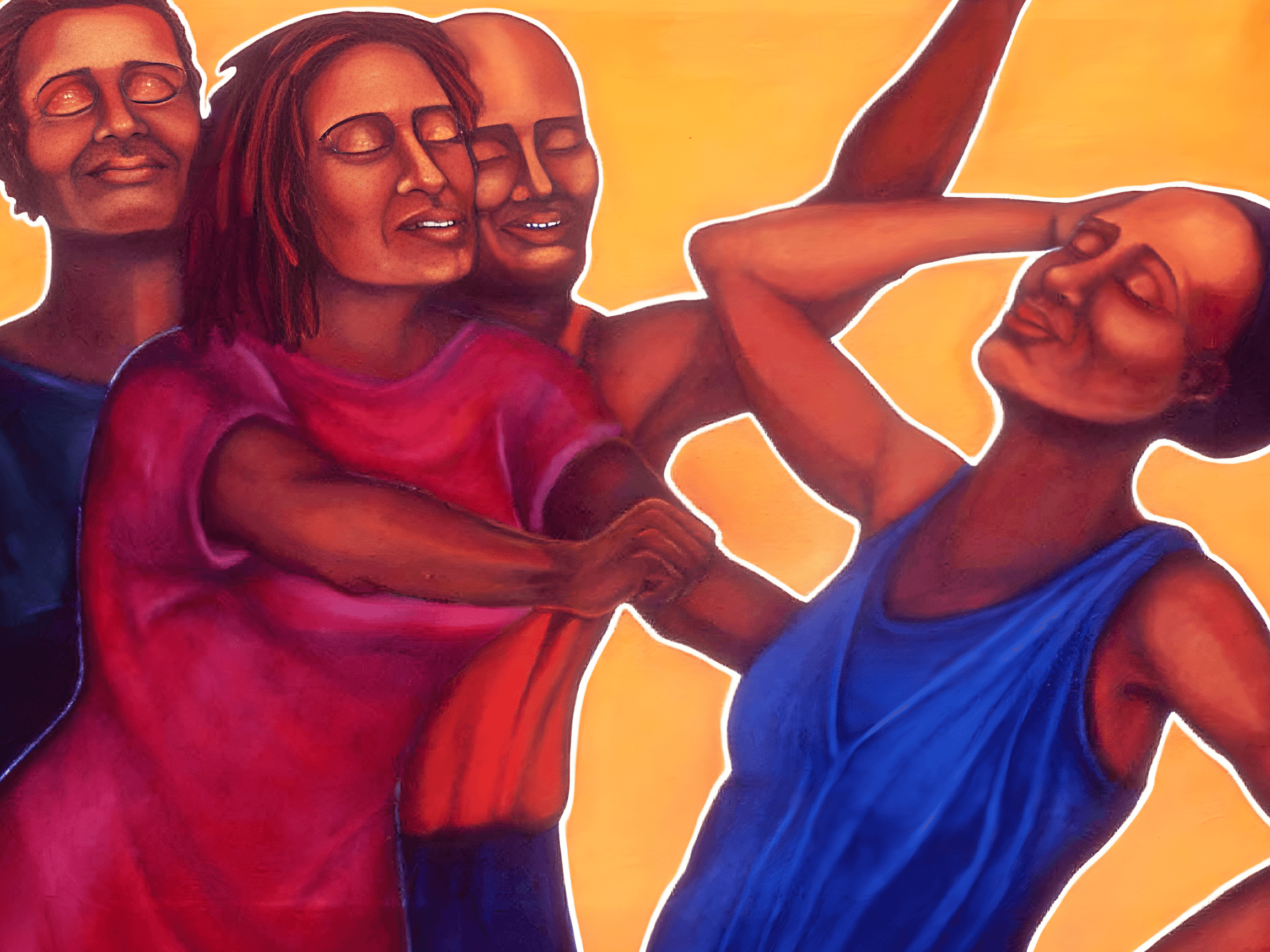 Revival is a painting that explores the themes of baptism and blessings, but with a fresh perspective. Instead of depicting Spiritual Baptists, I’ve chosen to portray everyday people. The painting reflects the belief that we all have the power to uplift and renew each other, helping to cleanse our spirits from negativity.